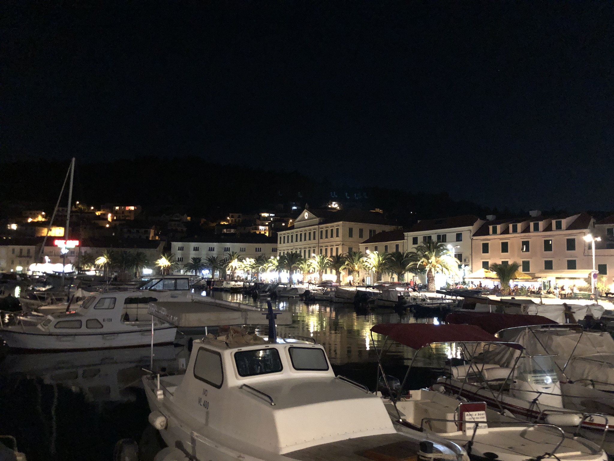 Estaba muy animado y lleno de terracitas, bares, konobas (tascas o tabernas croatas). Nosotros elegimos una de ellas y cenamos un buen pescado, pero tendremos que volver porque hemos leido que de día es preciosa y tiene un montón de calitas para descubrir 😉