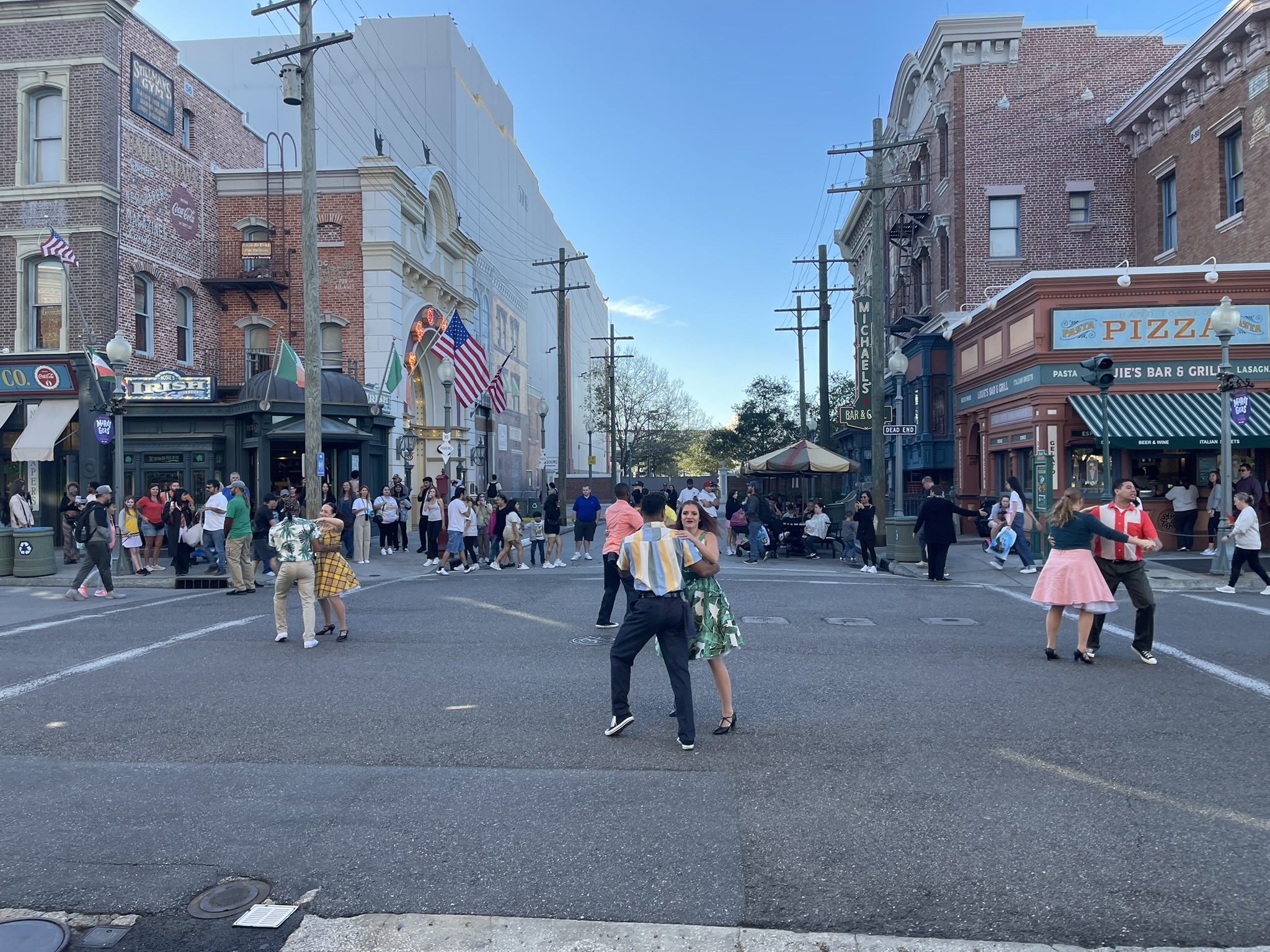 Íbamos consultando el reloj porque habían actuaciones programadas al aire libre en diferentes puntos. Así que de camino al restaurante seleccionado vimos este musical en el que sacaban a la gente a bailar con ellos, por si queréis alejaros un poco de la primera fila 😉